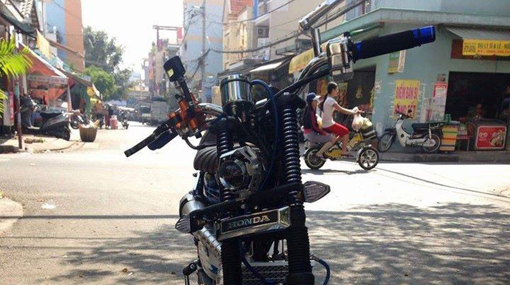 Một biker trẻ tại Sài Gòn mới đây đã gây bất ngờ cho rất nhiều người khi tự tay độ chiếc Honda Cub của mình theo một phong cách hoàn toàn mới. Xe được trang bị thêm một loạt chi tiết hàng hiệu thường xuất hiện trên những mẫu xe thể thao phân khối lớn. Có thể kể đến một vài cái tên như dàn đầu cứng cáp với đèn pha cầu Xenon, bao tay Rizoma gù xéo, bình dầu Rizoma Next.