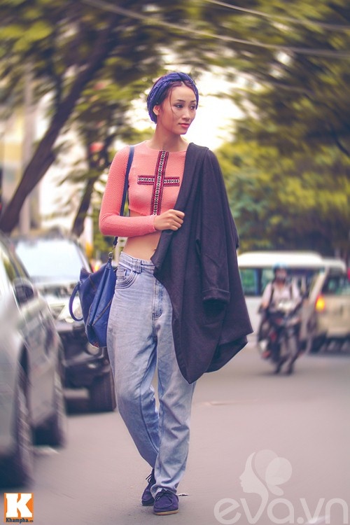 | Trang không chạy theo hàng hiệu mà cô luôn đi theo xu hướng để giúp mình nổi bật giữa bạt ngàn cô gái có phong cách thời trang na ná nhau. |