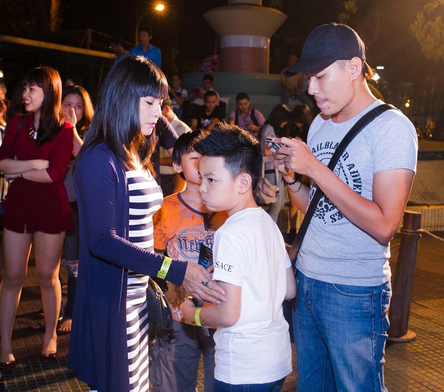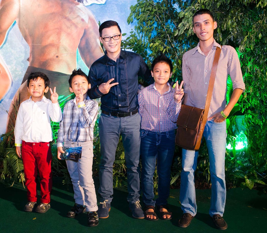 Anh đi cùng con trai và 2 đứa cháu. Hoàng Bách còn tham gia Quả tim máu của Victor Vũ. |
