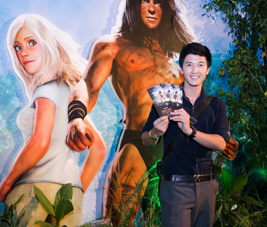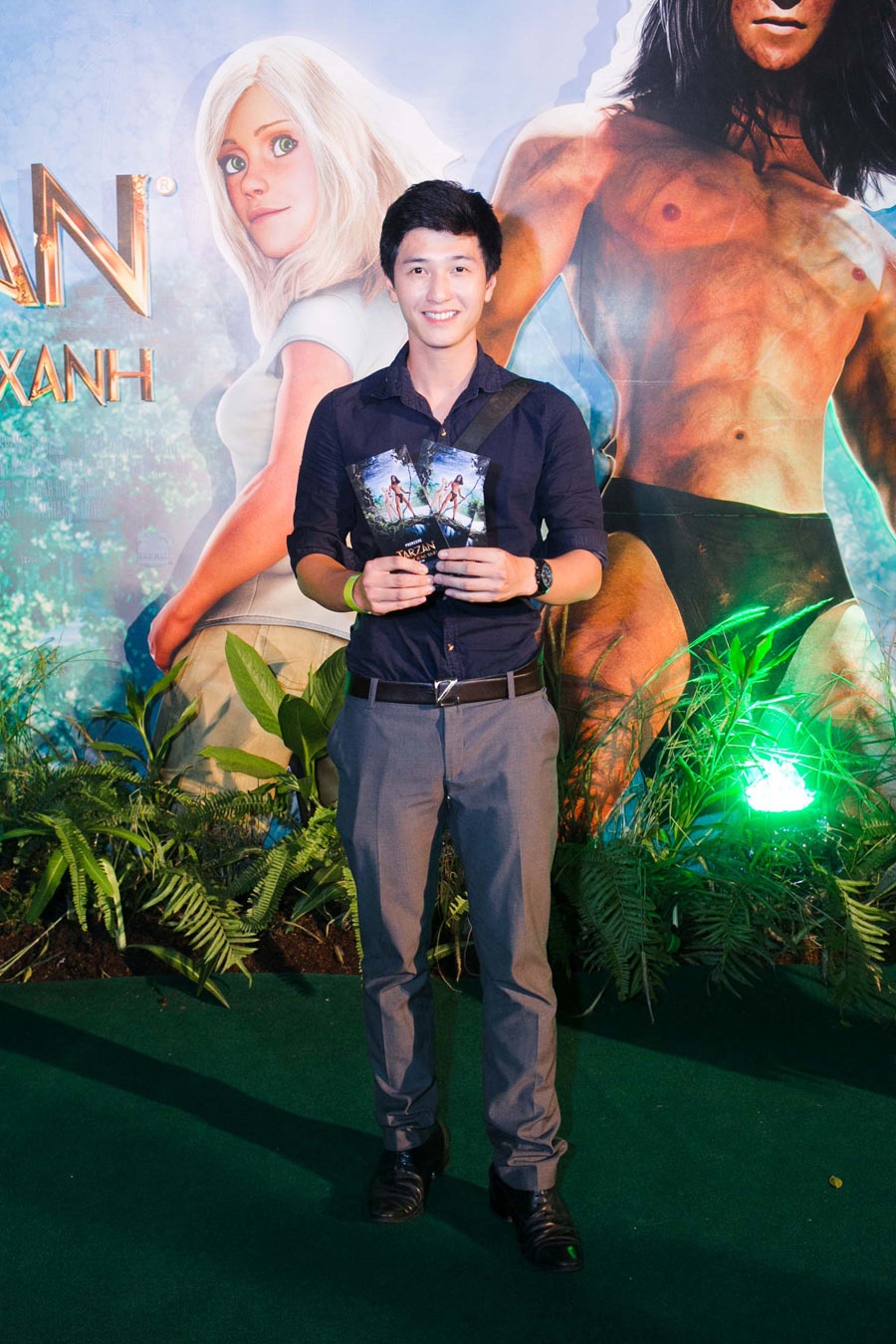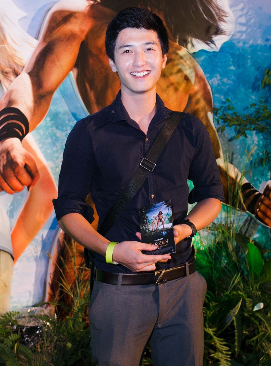 Tối 2/1, Huỳnh Anh tham gia buổi họp báo công chiếu bộ phim hoạt hình 3D Tarzan - Cậu bé rừng xanh tại cụm rạp Galaxy, TP.HCM với tinh thần vui vẻ sau khi đã chia tay bạn gái chân dài Kỳ Hân. |