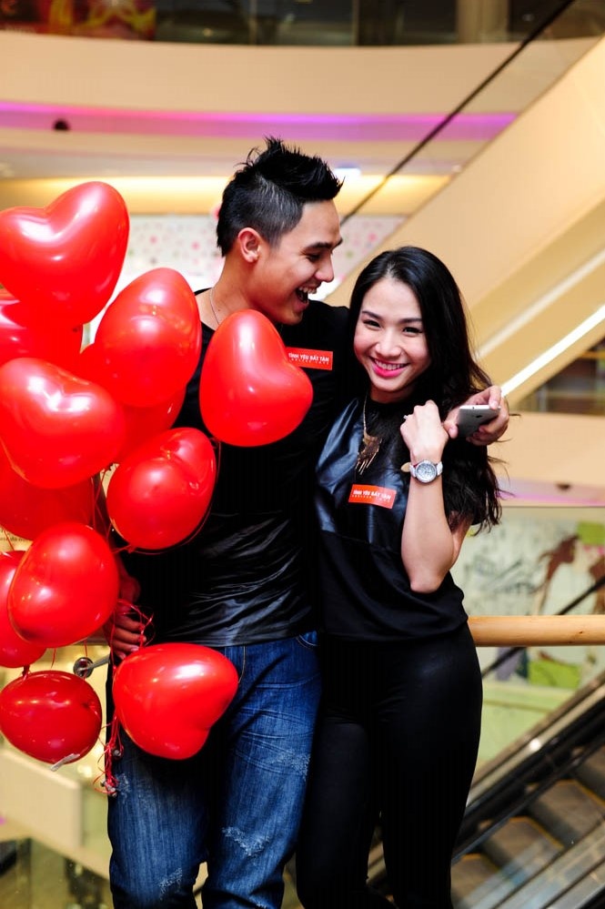| Đôi vợ chồng son Baggio và Quỳnh Trâm cũng góp mặt trong sự kiện này. Họ mặc áo đôi và liên tục tạo dáng nhí nhảnh để các phóng viên tác nghiệp. |