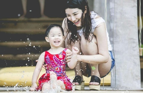 | Trong trang phục màu sắc nhẹ nhàng, nữ diễn viên cho biết con gái ngày càng có tố chất nghệ sĩ, tạo dáng chuyên nghiệp trước ống kính. |