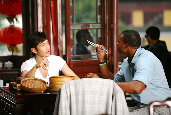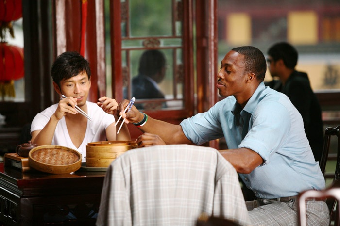 Trong loạt ảnh mới công bố, fan được thấy một Huỳnh Hiểu Minh "nhỏ bé" bên anh chàng Dwight Howard cao tới 2m11. Ngoài những giây phút căng thẳng trên sân tập, cả hai còn có rất nhiều trải nghiệm vui vẻ cùng nhau. Ngôi sao bóng rổ Mỹ còn được Huỳnh Hiểu Minh dạy cách cầm đũa.