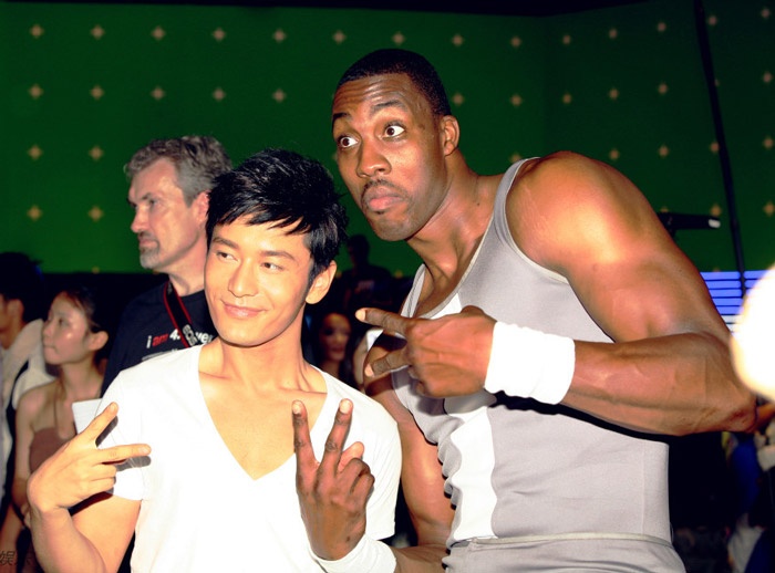 | Huỳnh Hiểu Minh như người tí hon khi đứng bên cạnh anh chàng Dwight Howard cao 2m11 |