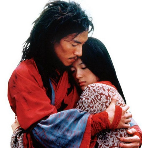 | Chương Tử Di và Trương Chấn với vai Ngọc Kiều Long và La Tiểu Hổ trong Ngọa hổ tàng long (2000). |