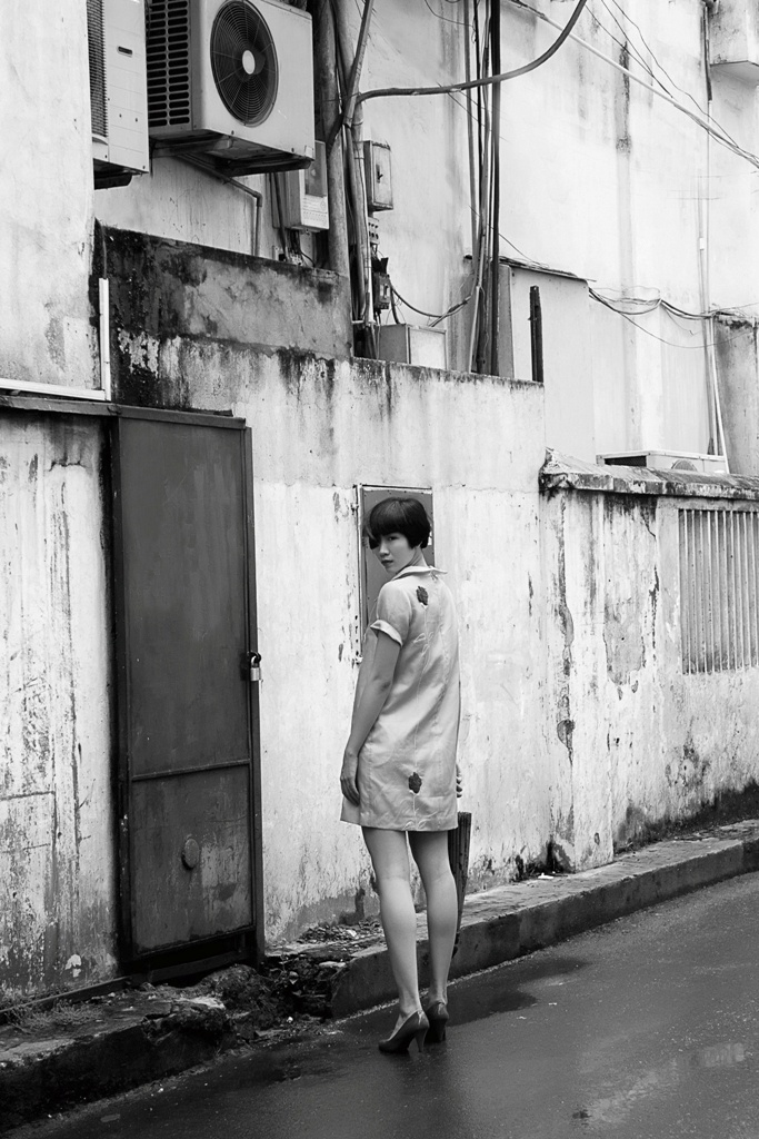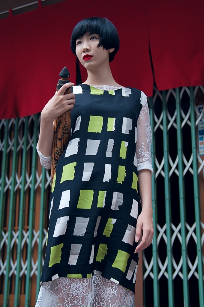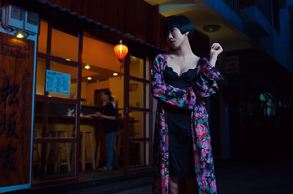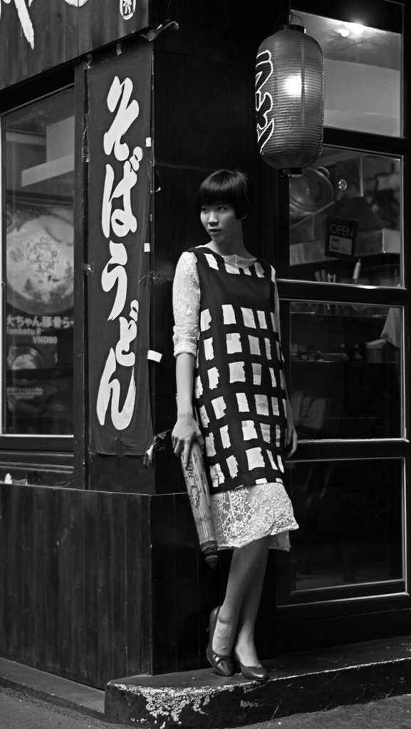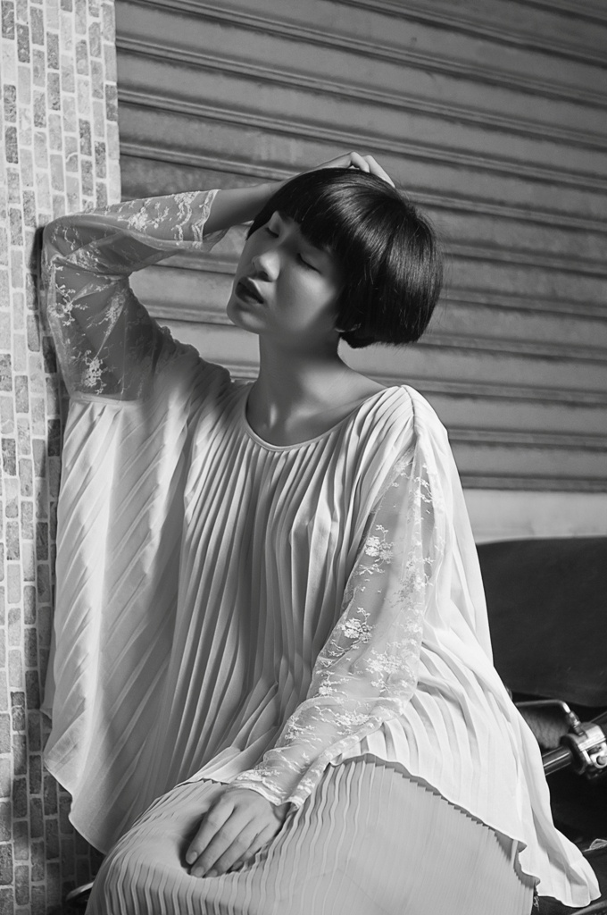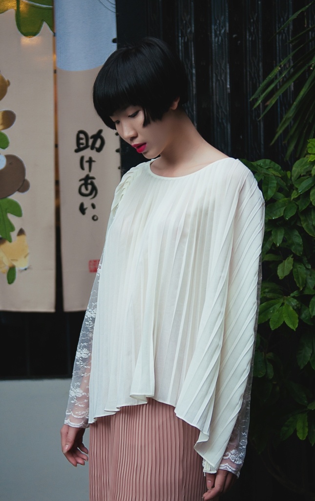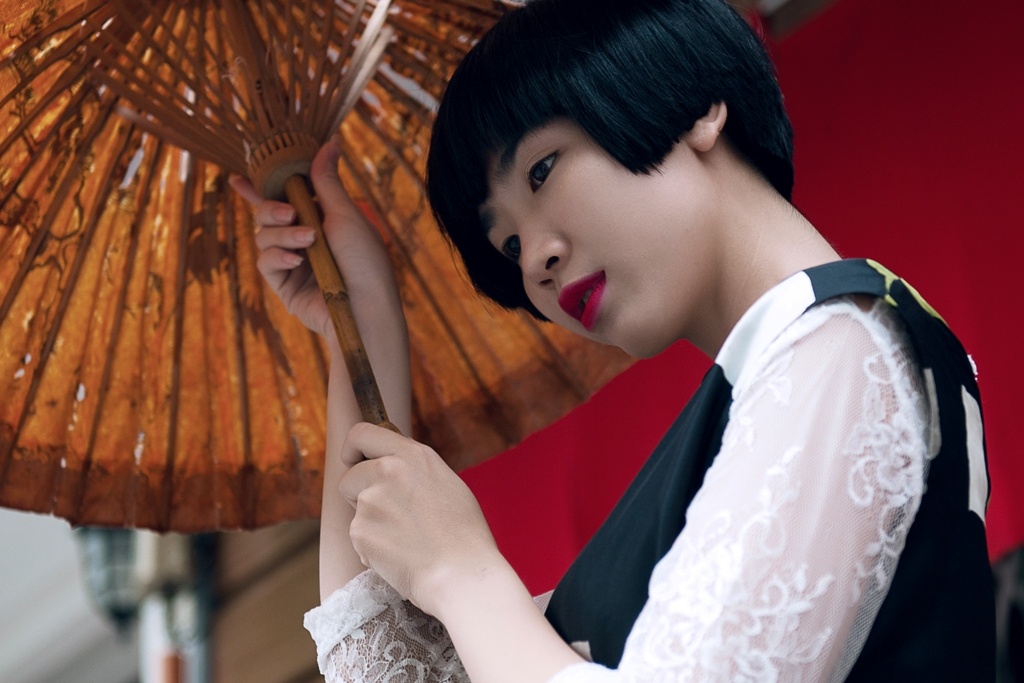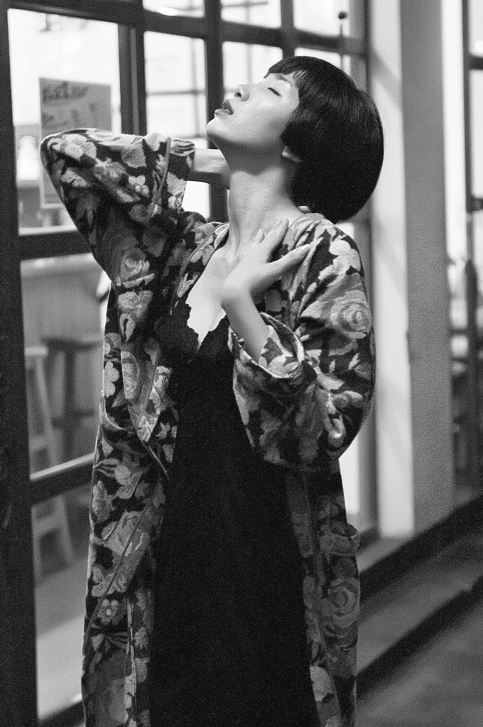 | Nhìn xa, trông cô như một cô gái Nhật Bản lạnh lùng nhưng không kém phần cuốn hút. |