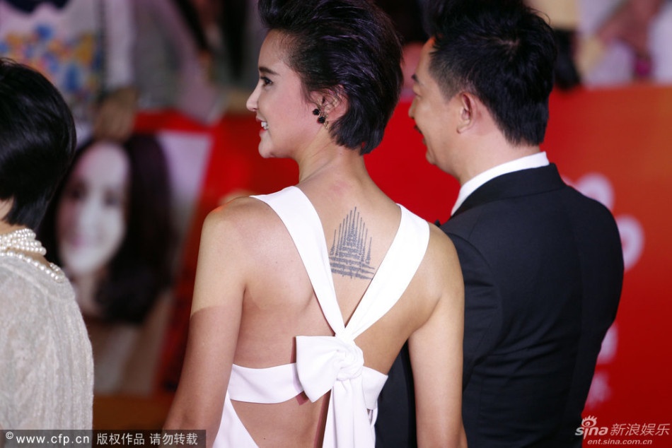 | Người đẹp để lộ hình xăm cá tính trong bộ váy có những đường cắt cúp táo bạo. |