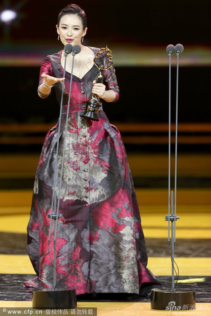 | Cô giành giải Nữ diễn viên chính xuất sắc nhất với vai diễn trong Nhất đại tông sư. Chia sẻ trên sân khấu, Chương Tử Di cho biết chiến thắng ngay tại quê nhà là niềm hạnh phúc hoàn hảo đối với cô. |