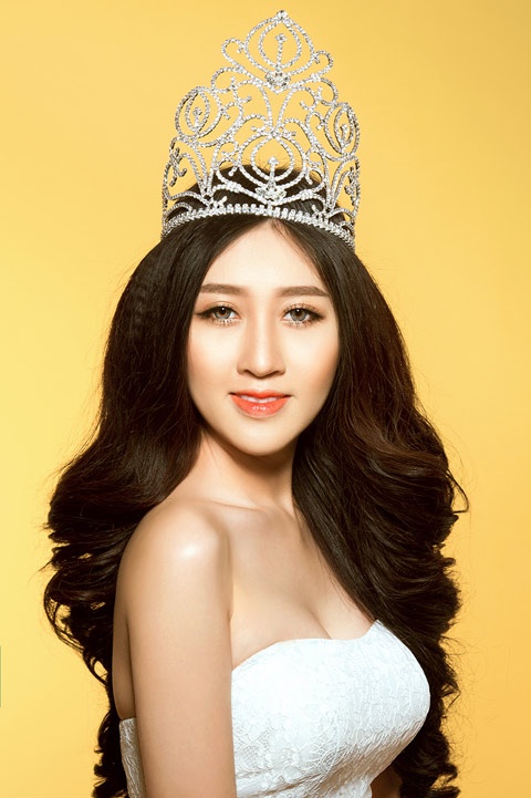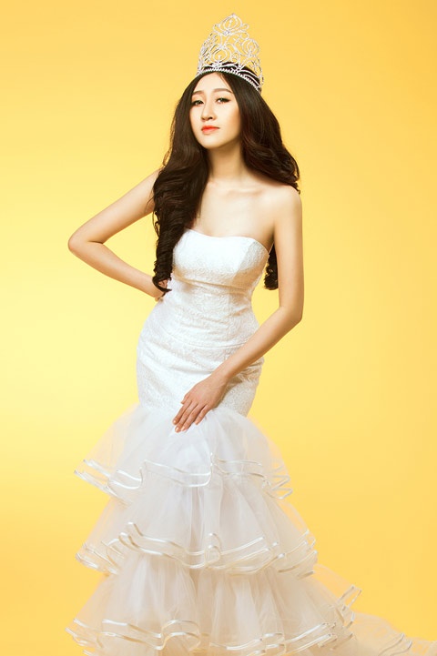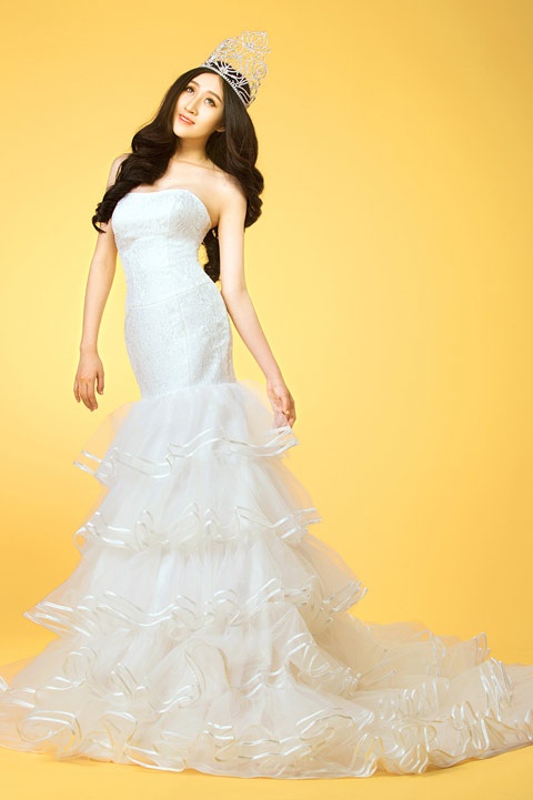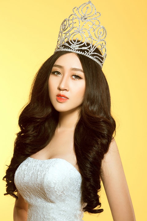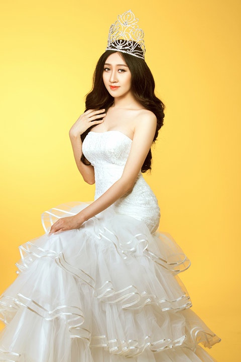Trong bộ ảnh mới, cô khoe vẻ đẹp sang trọng và quý phái. Người đẹp khéo léo diện trang phục thiết kế ôm sát cơ thể toát lên những đường nét quyến rũ. Để phù hợp với trang phục, người đẹp chọn kiểu tóc xỏa bồng, đội vương miện xinh đẹp.