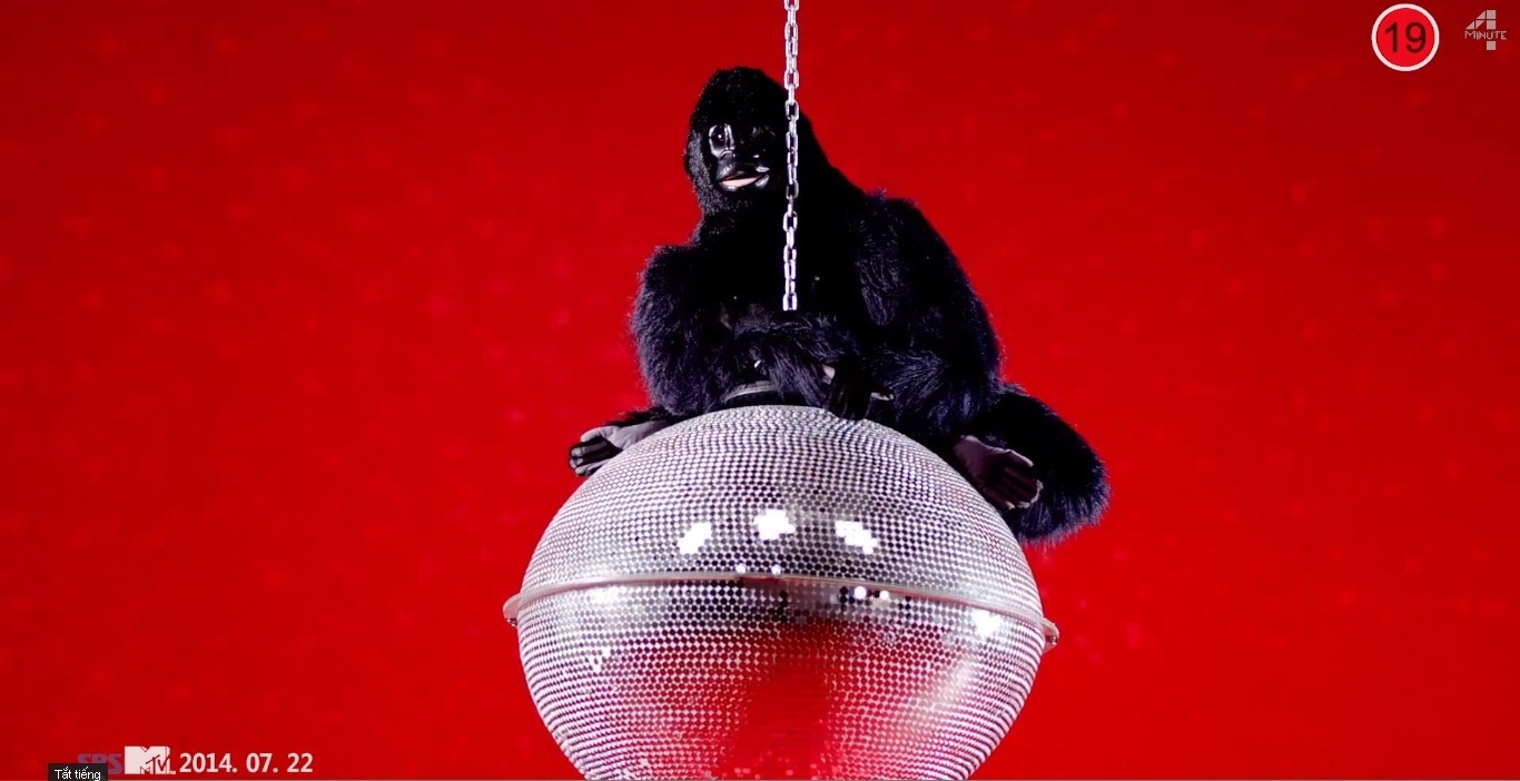 | Cảnh chú khỉ đu đưa trên quả cầu lấp lánh trong teaser Red của HyunA. |