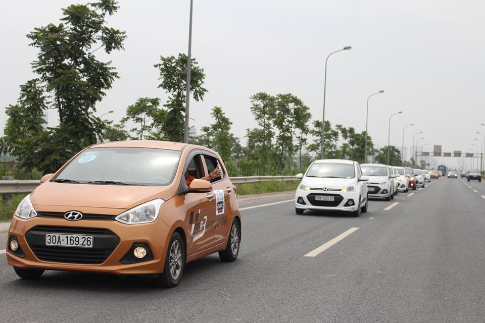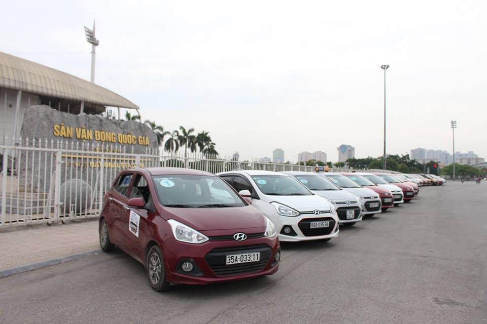 | 22 chiếc Hyundai Grand i10 của thành viên GRC tụ họp ở Mỹ Đình trước khi khởi hành đi Ba Vì. |