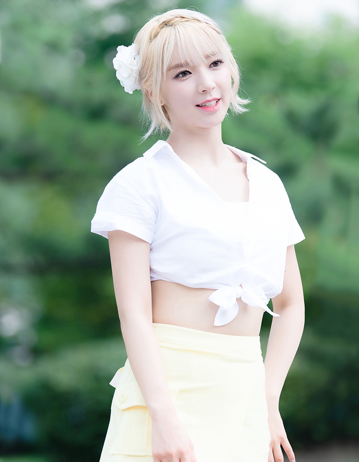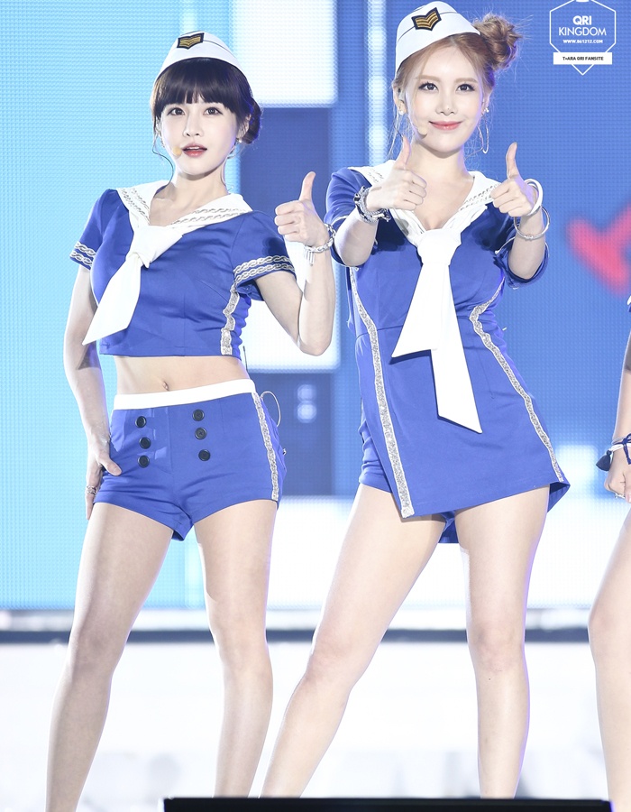 | Boram “xén bớt” độ dài đồng phục thủy thủ cho thoải mái và mát mẻ hơn. |