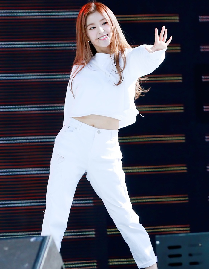 | Những cô nàng nhóm Red Velvet khoe vòng eo chuẩn với set đồ white on white. |