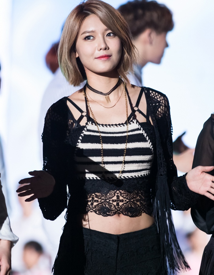 | Sooyoung (SNSD) thoải mái với bộ combo cá tính áo dây, quần short. |