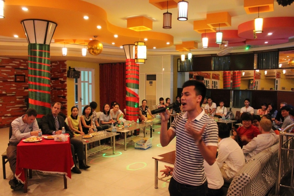 | Các học viên tự tin thể hiện những ca khúc tiếng Anh. |