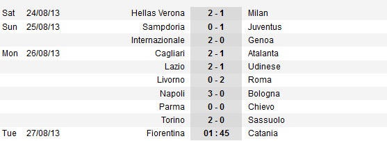 | Kết quả các trận thi đấu khác tại vòng 1 Serie A. |