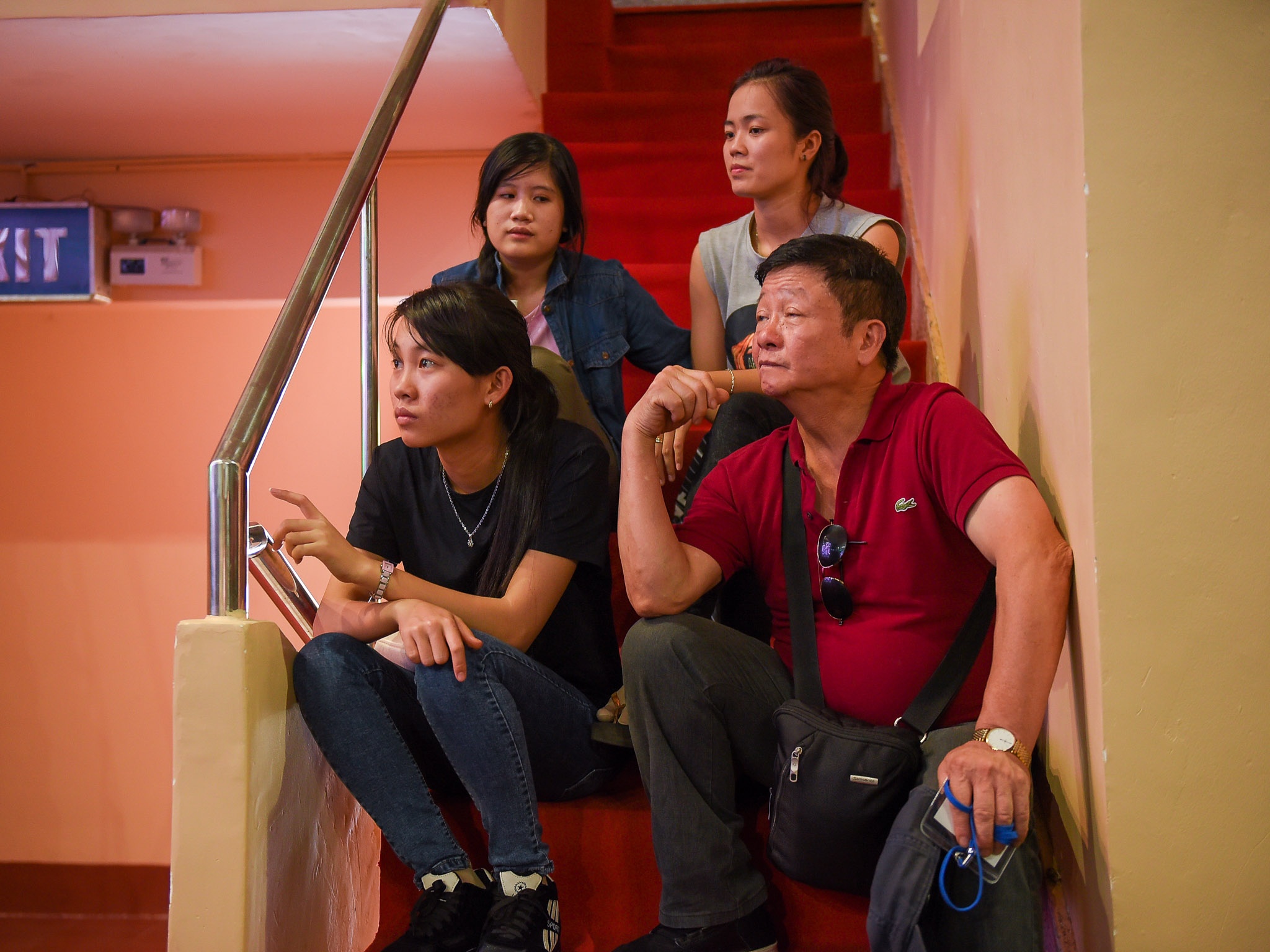 Trong lúc giọng ca điển trai luyện tập, bố và chị gái ngồi ở góc sân khấu chăm chú theo dõi. Bố Trọng Hiếu luôn đồng hành cùng con trai trong các hoạt động của anh. Chị gái của nam ca sĩ cũng về Việt Nam định cư để chăm sóc em trai. |