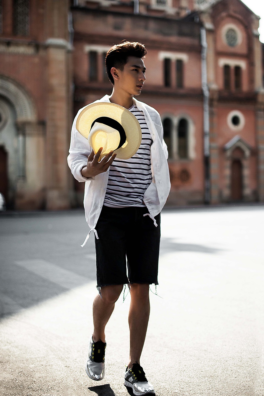 Trưởng nhóm 365 nổi bật trên những con phố trung tâm TP HCM nhờ những bộ cánh thời trang đời thường, hiện đại, toát lên vẻ điển trai, phóng khoáng.