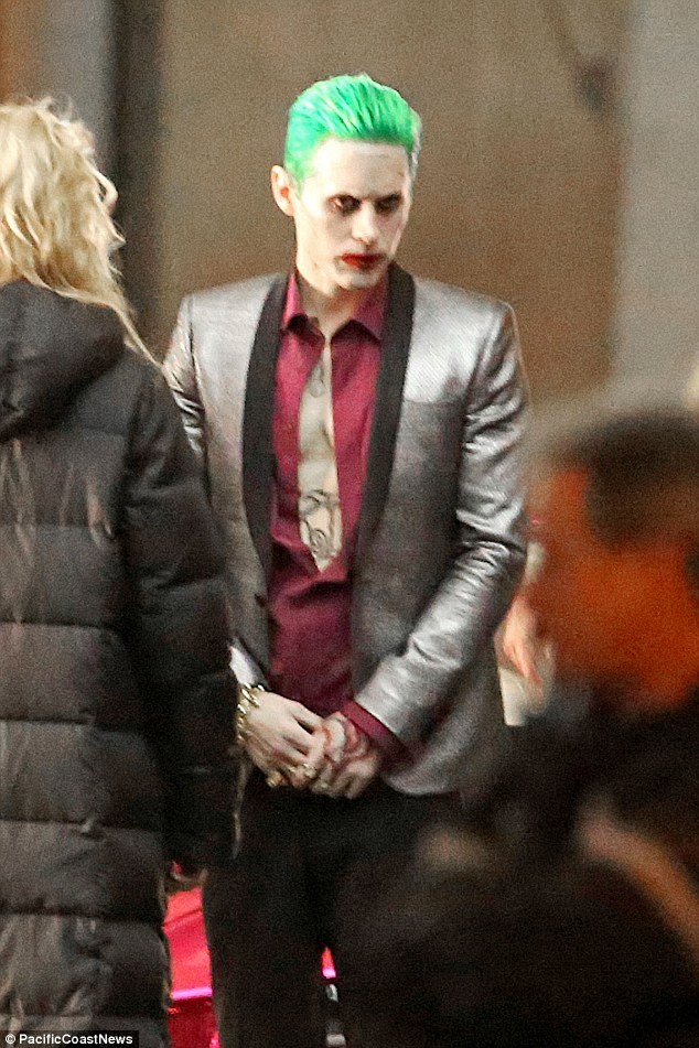 Sự cống hiến hết mình của tài tử 44 tuổi cho vai diễn Joker là không phải bàn cãi. Đoàn làm phim Suicide Squad tiết lộ anh đã luôn cố gắng nhập vai 24/7, kể cả khi nghỉ quay. Leto thường xuyên trêu chọc bạn diễn với những trò chơi khăm quái đản hay gửi tặng họ những món quà kinh dị - nỗ lực “sống đúng” với bản chất Joker. Tại buổi chụp hình chính thức đầu tiên cho phim, diễn viên/ca sĩ tài năng đã xuất hiện với ngoại hình gây sốc cùng tóc xanh lá, mắt kẻ viền đen, môi tô son đỏ đậm, cởi trần khoe những hình xăm u tối trên ngực.