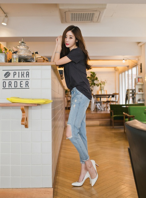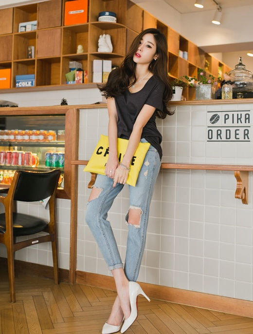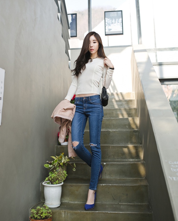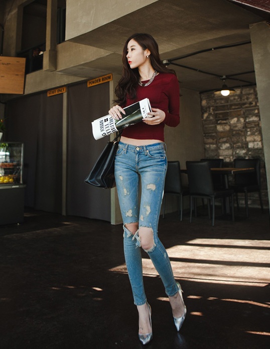 | Jeans rách mix kèm crop top ôm sát cho vóc dáng mảnh mai. |