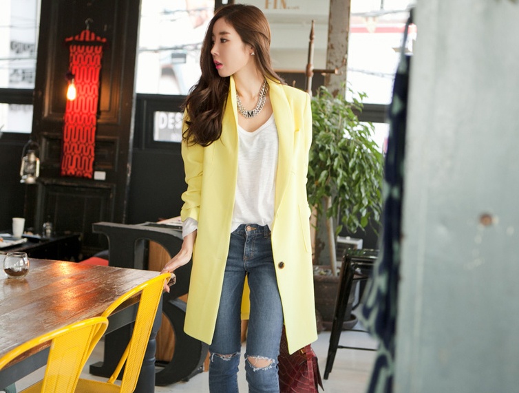 | Blazer cài cúc là một giải pháp cho các bạn gái duyên dáng ưa thích quần jeans rách. |