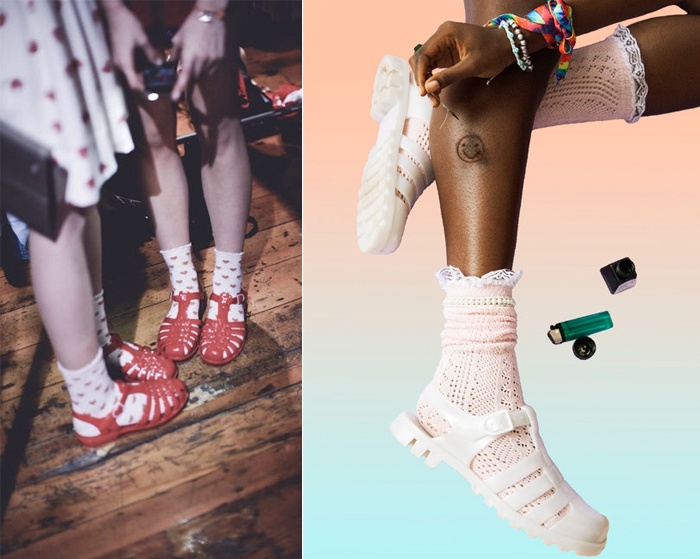 Sandal và tất vẫn luôn là đề tài tranh cãi muôn thuở của giới làm đẹp. Nhưng với những đôi giày nhựa, có lẽ tốt hơn cả là bạn nên tạm quên đi câu chuyện ồn ào này. Tất và jelly sandal chính xác là một cặp đôi hoàn hảo.