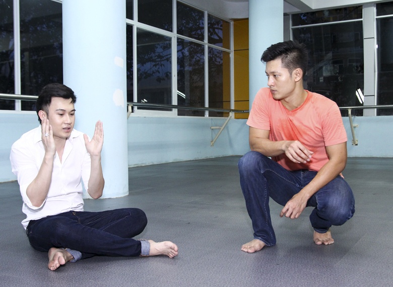 | Dương Triệu Vũ và Đức Tuấn còn tranh thủ tập thêm để tiết mục của hai cặp gây ấn tượng mạnh với khán giả. |