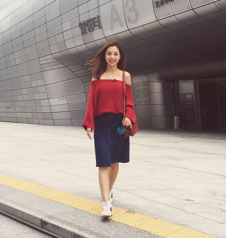 | Bà mẹ 2 con đặc biệt ưu tiên các mẫu giày sneaker trắng và kết hợp với các mẫu trang phục trẻ trung, nhí nhảnh. |