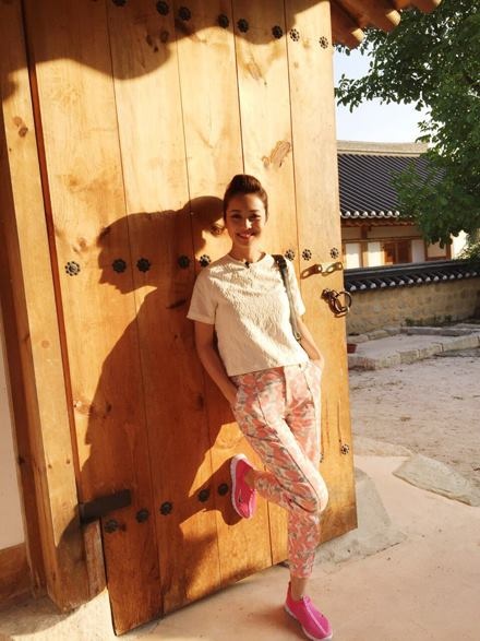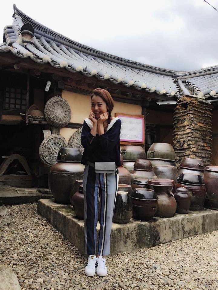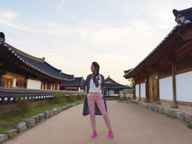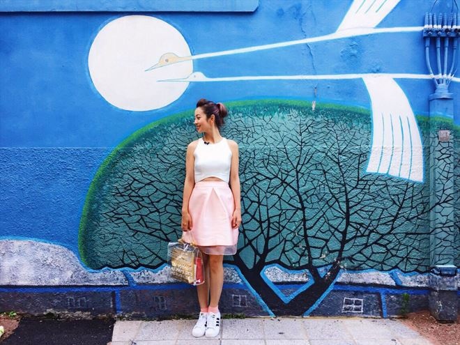 | Phong cách đáng yêu với quần kẻ, áo lửng của Jennifer Phạm. |
