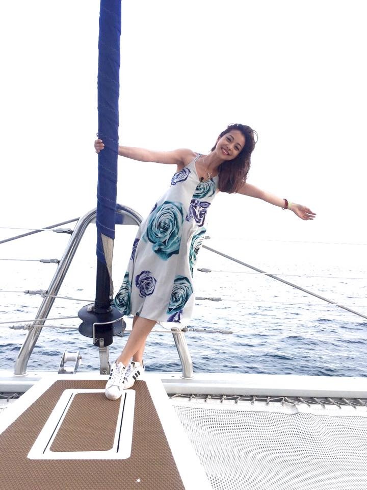 | Đôi giày rong ruổi cùng những chuyến đi xa của Hoa hậu với phong cách thời trang trẻ trung, nữ tính. |