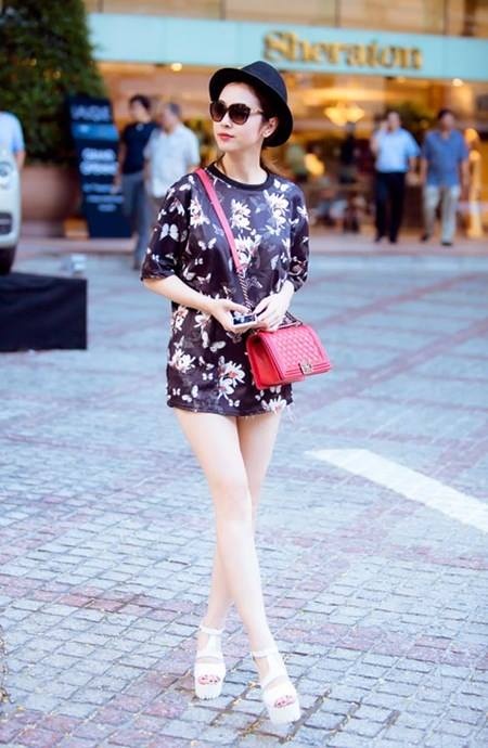 | Mốt giấu quần được người đẹp mặc rất đáng yêu với họa tiết hoa trẻ trung. |