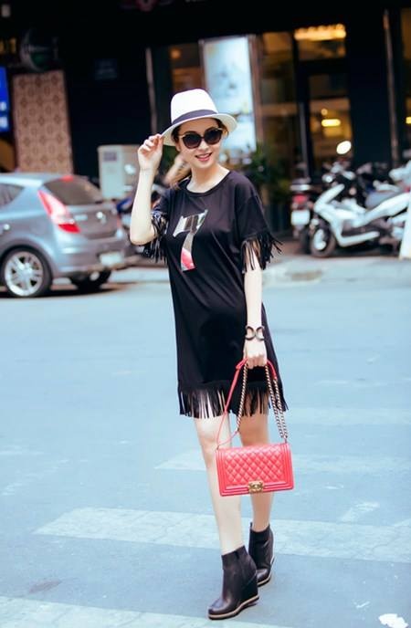 | Ngay cả thời trang tua rua vốn rất cá tính cũng được cô ưa thích. |