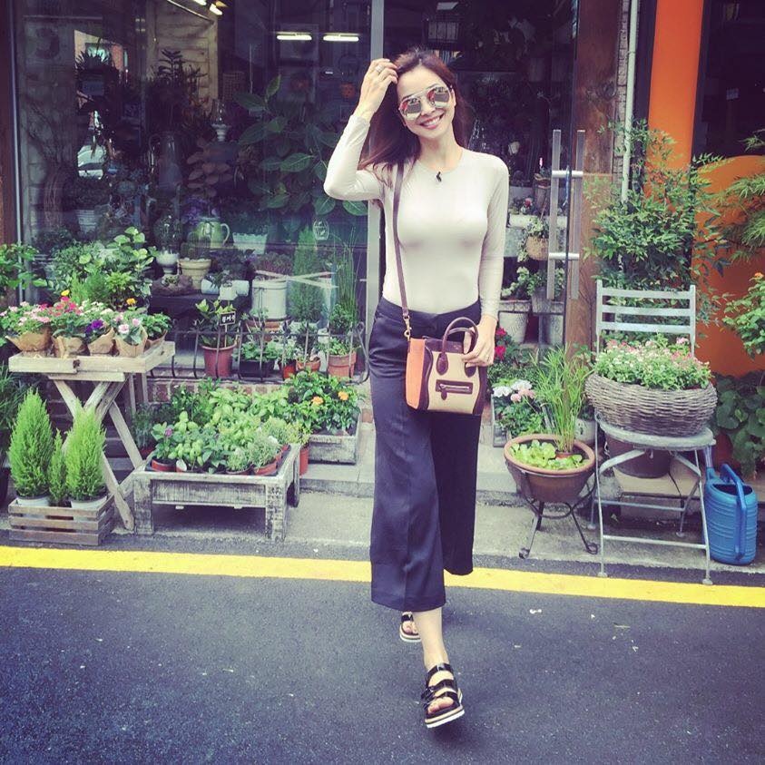 | Hình ảnh xuống phố rất nhẹ nhàng của người đẹp với áo thun cổ điển và quần lửng trẻ trung. |