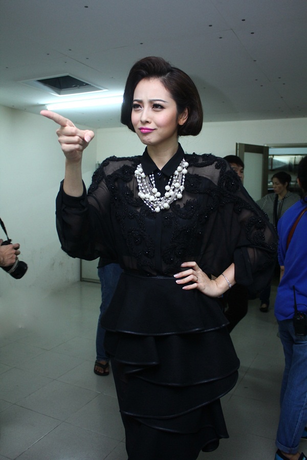 | Chính do cách phối đồ khó hiểu này mà cô trở nên kém xinh khi đứng cạnh Hà Hồ. |