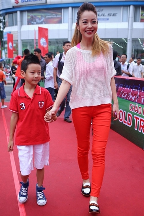 | Thời trang dạo phố nhiều tầng nhiều lớp và rất rối mắt của bà mẹ hai con. |