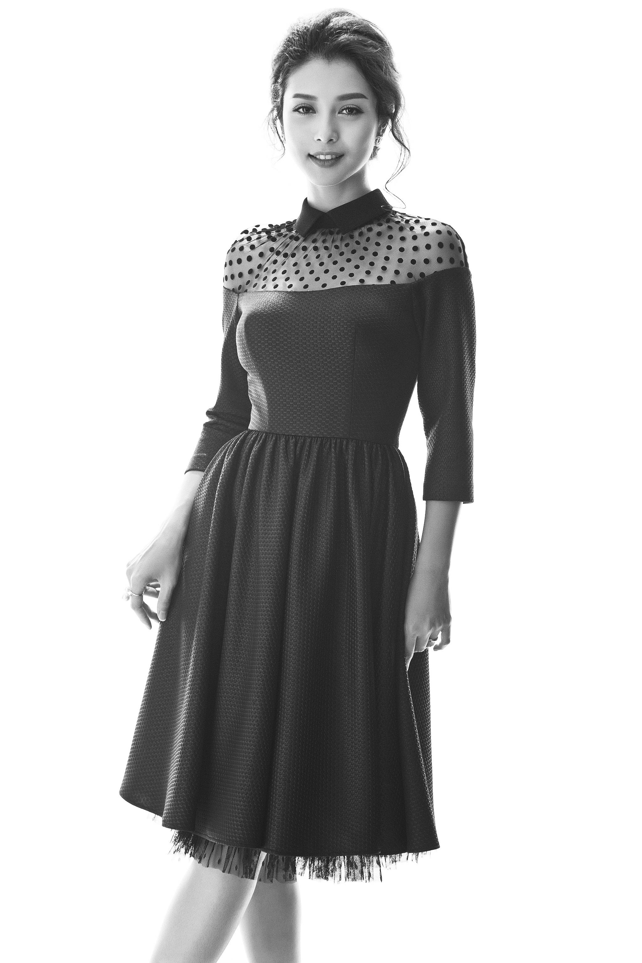 | Một số bộ cánh cổ điển được phối voan mỏng chấm bi ở thân áo. |