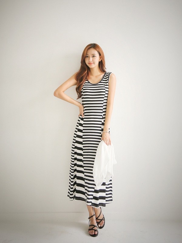 Jersey maxi hay còn gọi là váy maxi cotton thường có kiểu dáng đơn giản và hơi ôm lấy cơ thể, kiểu dáng váy mang tới vẻ năng động, khỏe khoắn rất thích hợp dành cho các quý cô có dáng người cao hay dáng "thước kẻ". Để không bị coi là "thẳng đuột" khi diện chiếc váy dài này, tốt nhất các quý cô nên lựa chọn những kiểu maxi có phần dây buộc eo hay những kiểu maxi có phần chân váy hơi xòe để tạo sự cân bằng cũng như sự uyển chuyển cho cơ thể.