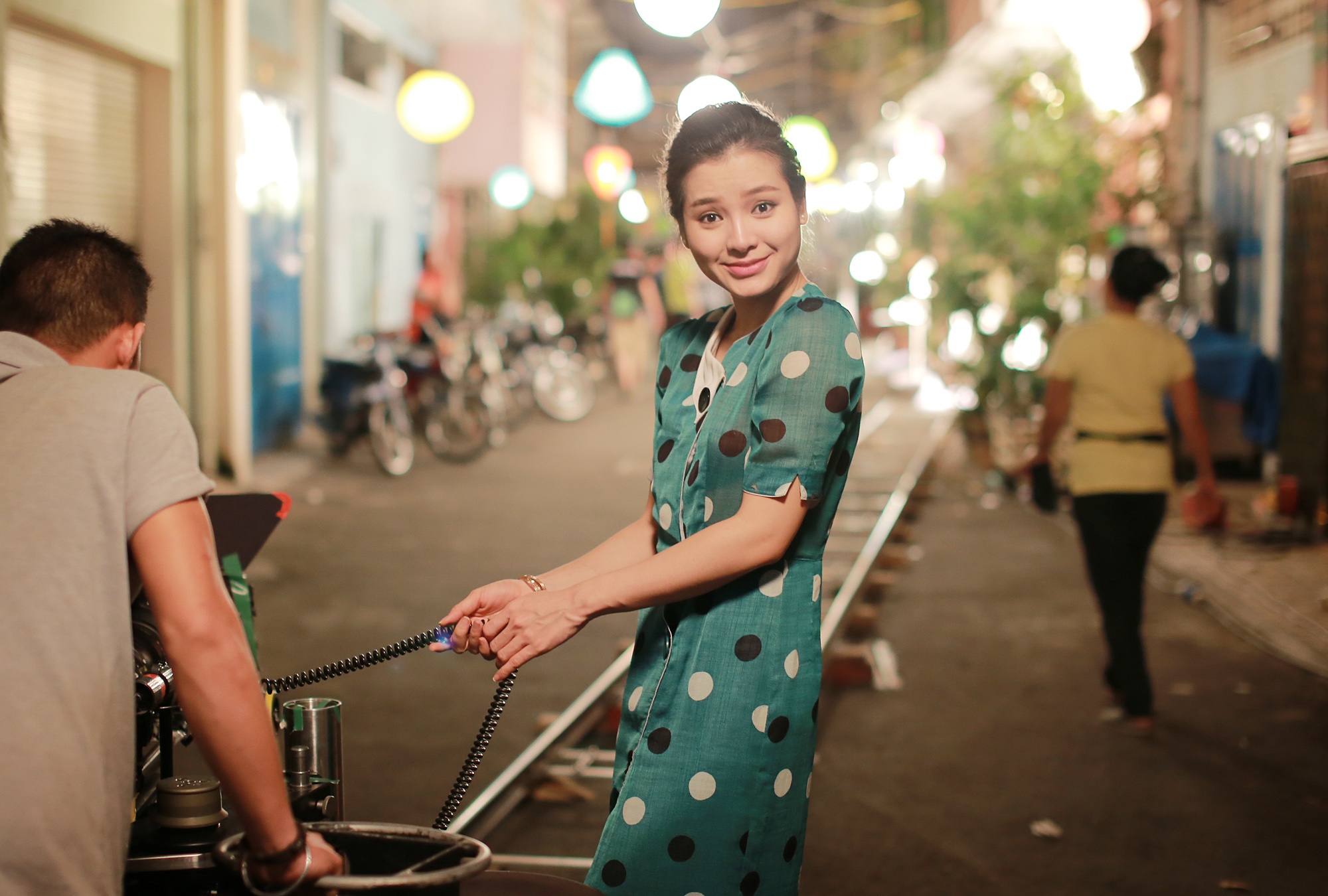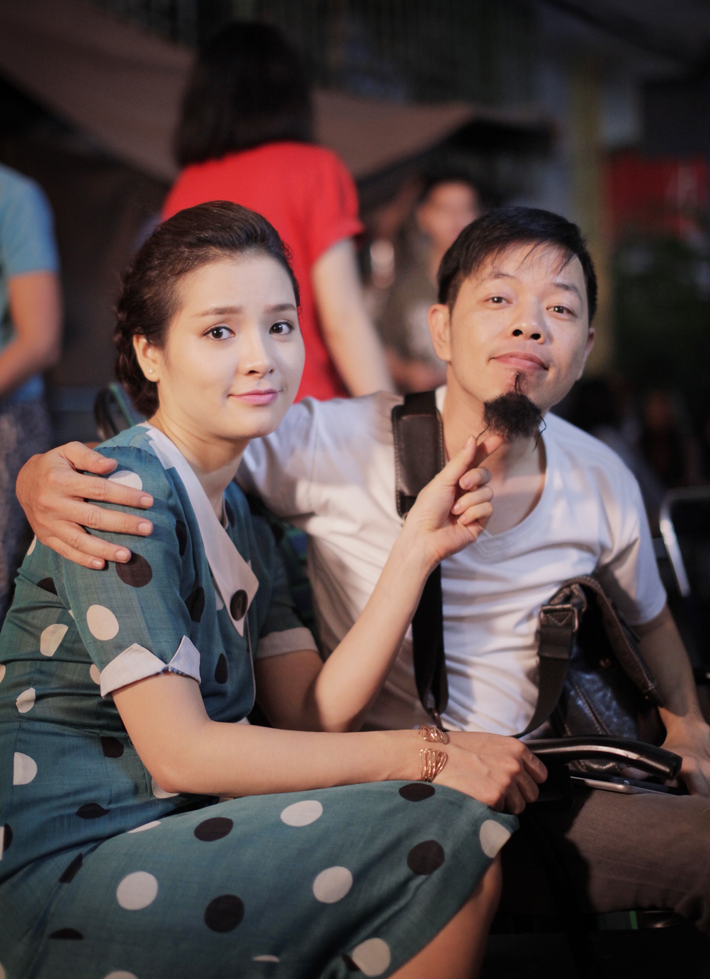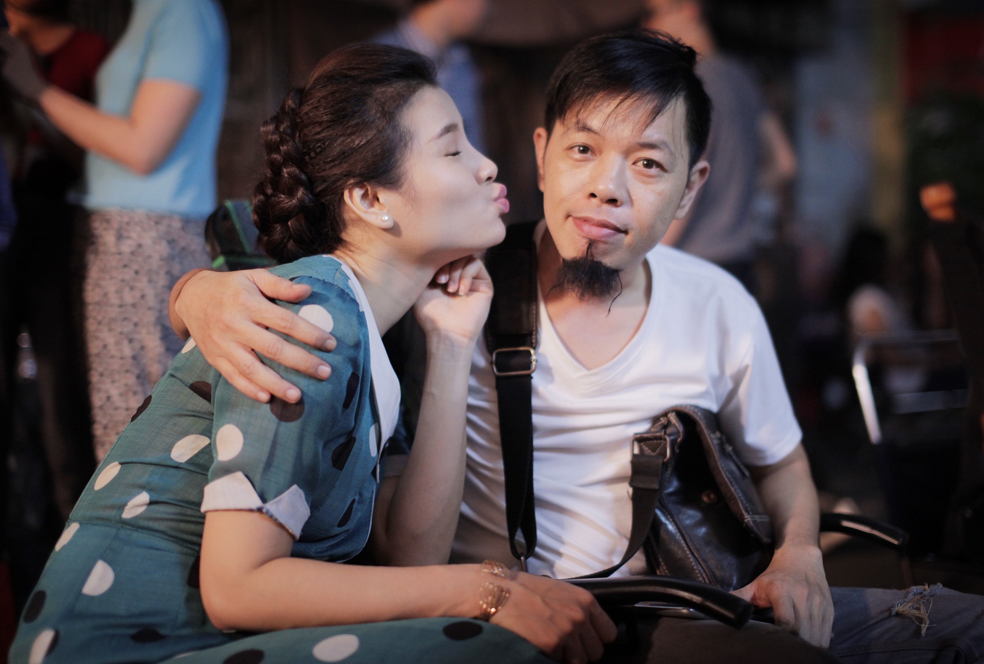 | Sau cảnh quay, cô tình nguyện làm trợ lý của đạo diễn Charlie Nguyễn, bóp vai cho anh đỡ mệt sau ngày dài ngồi trước máy. |
