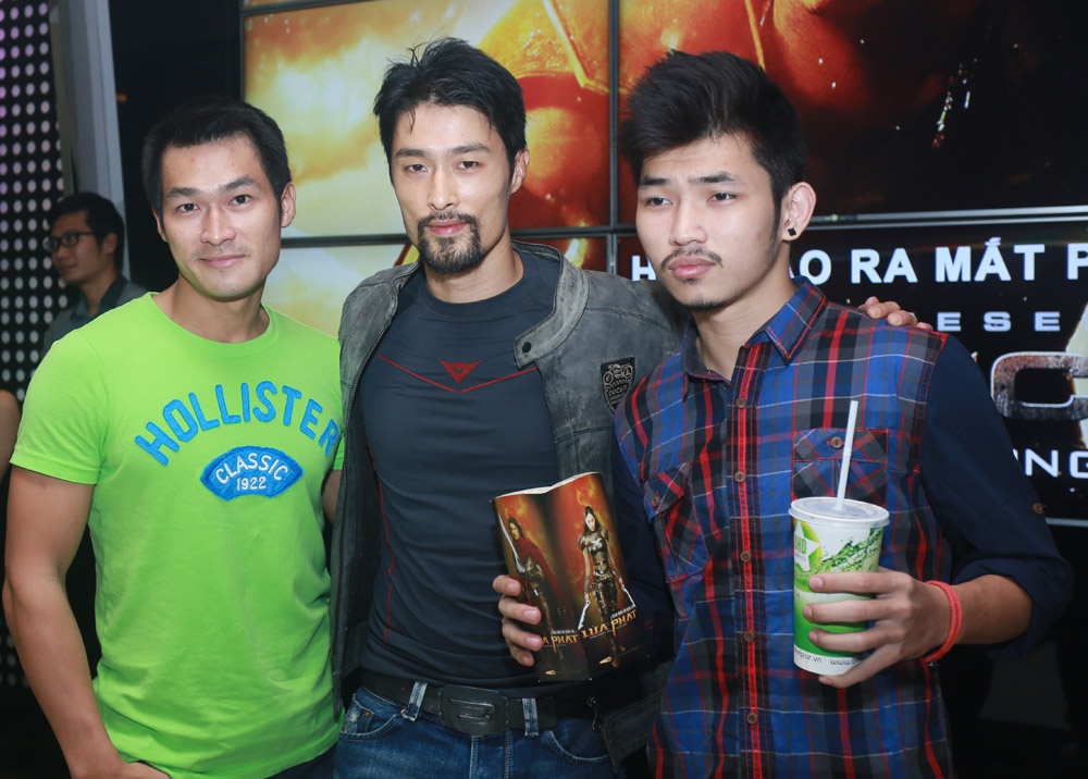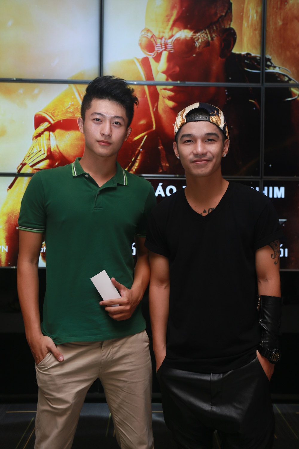 | Cường Seven diện trang phục độc đáo, làm toát lên cá tính của một dancer. Anh chàng đi xem phim cùng hot boy Harry Lau, nam diễn viên phim Thần tượng. |