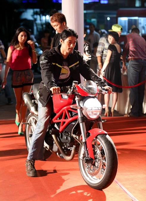 | Johnny và Ducati Monster 1100 trên thảm đỏ năm 2010. |