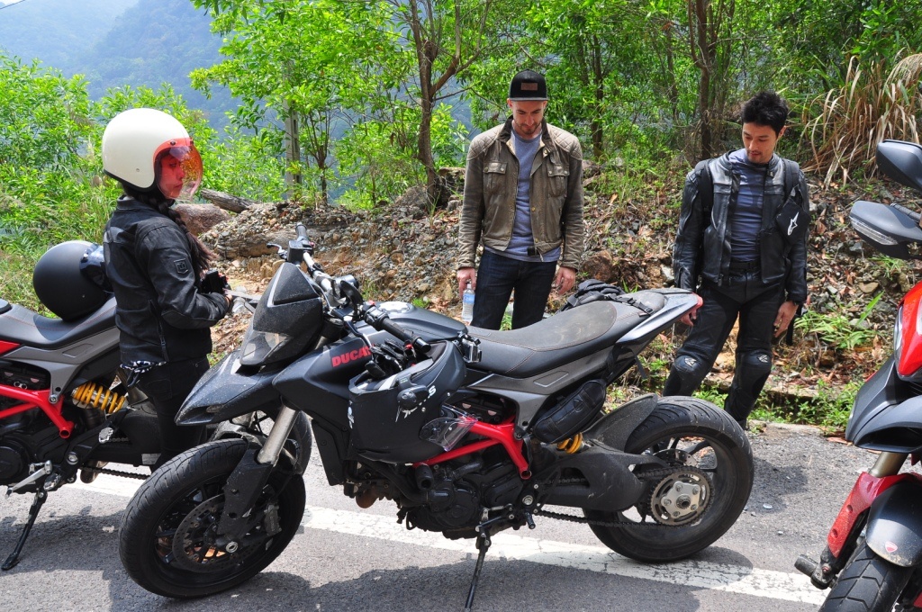 Một số đoạn Quốc lộ 1A đang thi công là thử thách rất lớn với các biker trong đoàn. Mặc dù vậy, những chiếc Ducati chứng tỏ khả năng vận hành ổn định trên nhiều dạng địa hình khác nhau nên đoàn không gặp nhiều khó khăn.