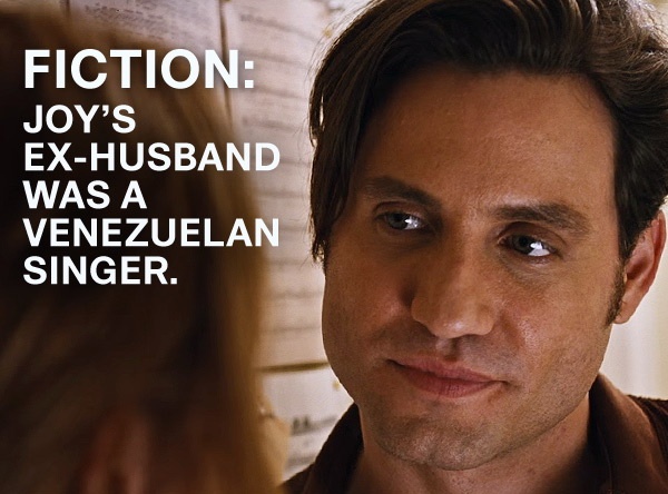 | Ở ngoài đời, chồng cũ của Joy Mangano là một bạn học cũ, chứ không phải một ca sĩ đến từ Venezuela. Ảnh: HistoryvsHollywood |