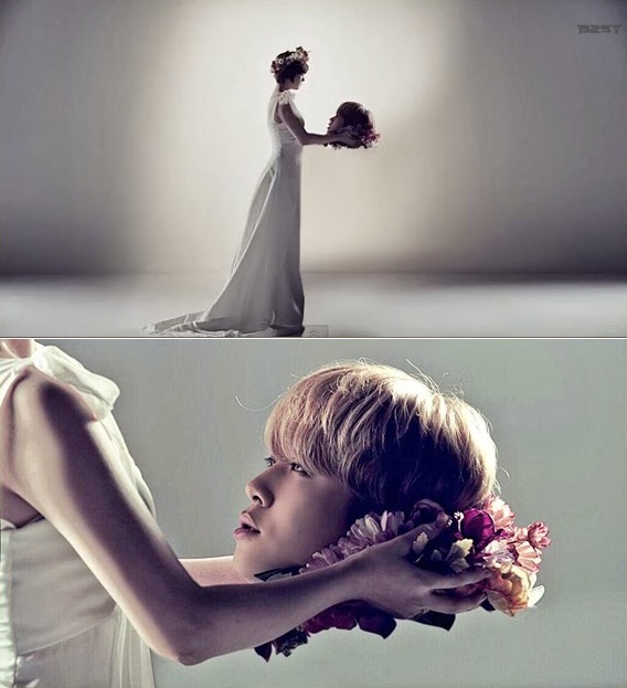 Trong đó, ấn tượng nhất chính là hình ảnh Jun Hyung chỉ có chiếc đầu quấn hoa xung quanh và đôi mắt chất chứa đầy xúc cảm.
