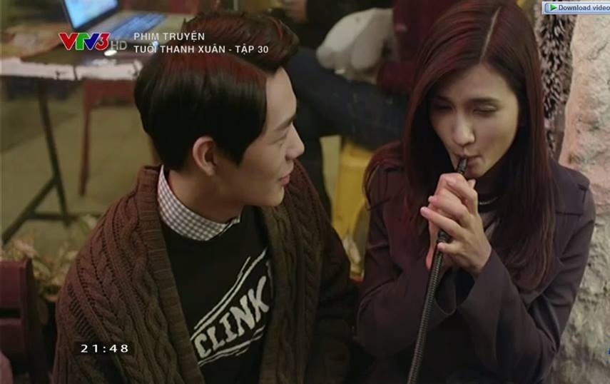 | Hình ảnh Mai (Kim Tuyến) hút shisa xuất hiện trong tập 30 của Tuổi thanh xuân. |