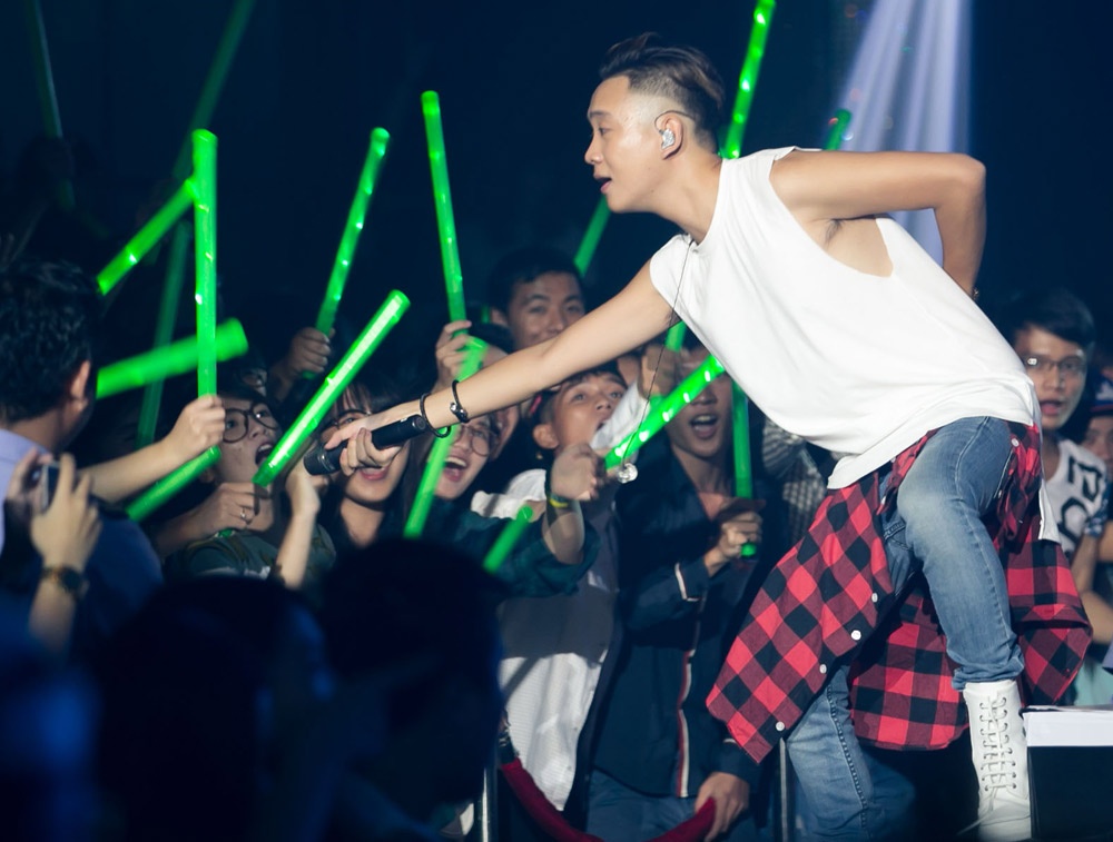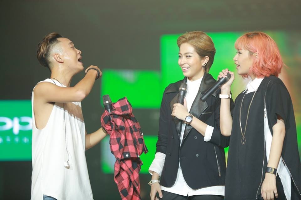 | Màn biểu diễn của Justatee và Chi Pu khiến các bạn trẻ ngồi phía dưới không ngừng la hét, gọi tên họ. Ngoài đời, cả hai là những người bạn thân thiết khi còn ở Hà Nội. Tuy nhiên, sau khi Chi Pu hoạt động nhiều trong TP.HCM, họ ít có cơ hội gặp nhau. |