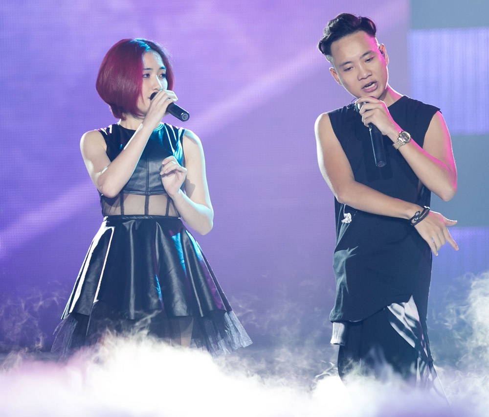 | Chi Pu và Gil Lê diện trang phục tông xuyệt tông trắng đen khi song ca cùng nam ca sĩ. Ca hai tung hứng cùng chủ nhân tạo nên màn biểu diễn thăng hoa, ngập tràn cảm xúc. Chi Pu còn vừa hát vừa khoe vũ đạo đẹp mắt khiến fan thích thú. |