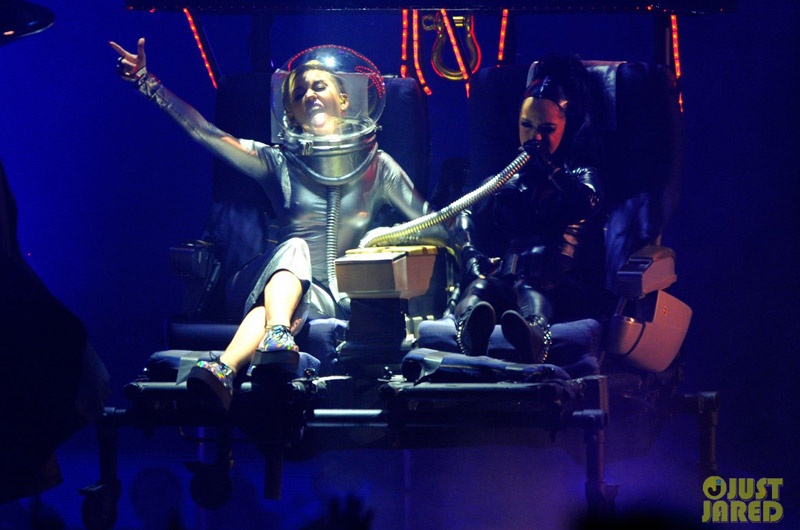 Miley Cyrus xuất hiện với hình ảnh phi hành gia và chiếc mic tên lửa trong phần trình diễn We Can't Stop