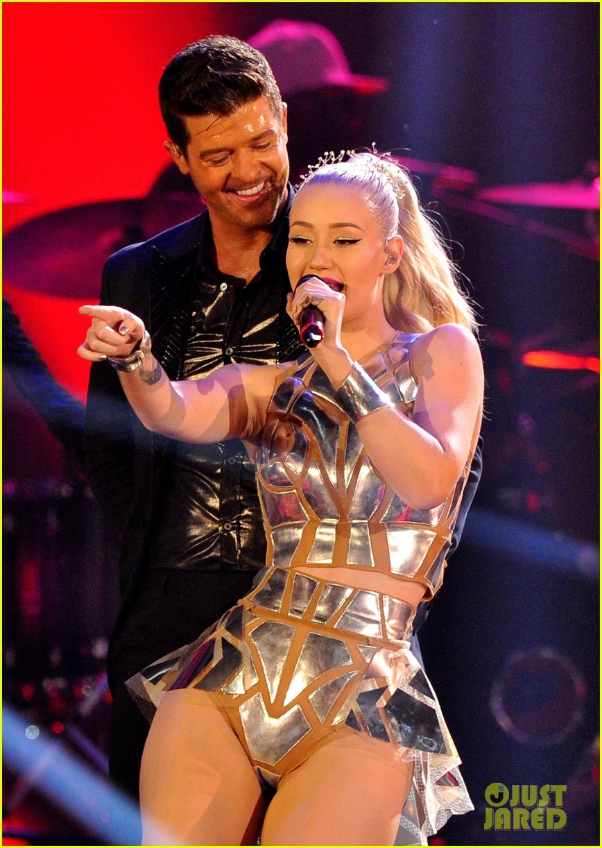 | Sau màn trình diễn gây sốc ở MTV VMA hồi tháng 8 cùng Miley Cyrus, trên sân khấu MTV EMA lần này, Robin Thicke đã chọn cho mình người bạn hát chung "an toàn" hơn - nữ ca sĩ 9x Iggy. |