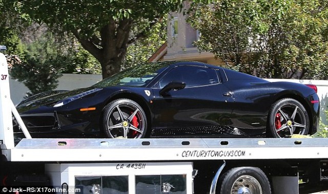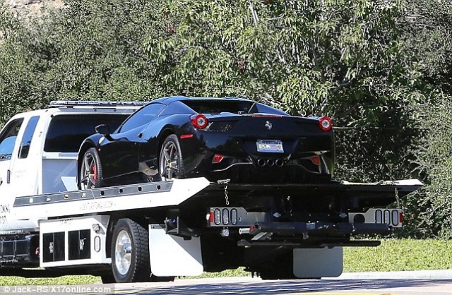 | Siêu xe Ferrari F458 Spider được vận chuyển về nhà Justin Bieber. |