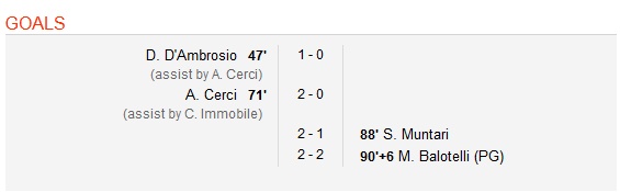Ở một trận đấu khác của đối thủ cùng thành phố Inter là AC Milan, các cẩu thủ áo sọc đỏ đen đã không may mắn khi chỉ có được một điểm trước đối thủ yếu hơn nhiều là Torino. Người đem về 1 điểm cho Milan chính là tiền đạo Balotelli với tình huống dứt điểm chính xác trên chấm 11m.